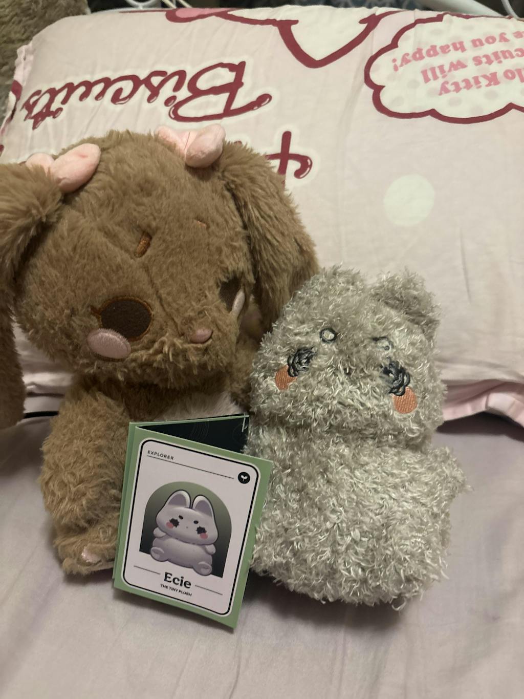 Meet Ecie - The tiniest sweetest girl in the world. A dust bunny stuffed animal that can be perched on your desk, nightstand, or snuggled up next to you on the couch.