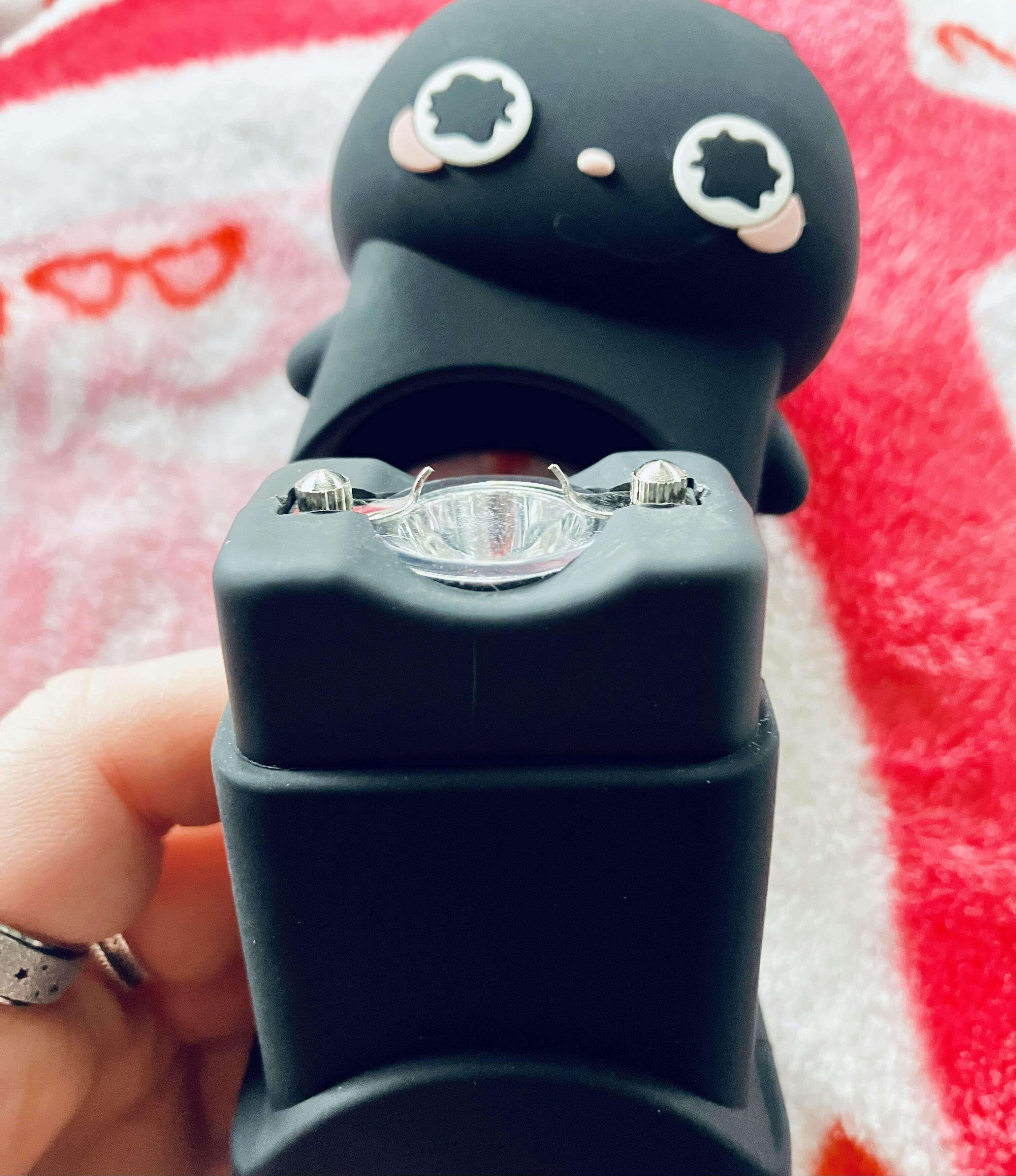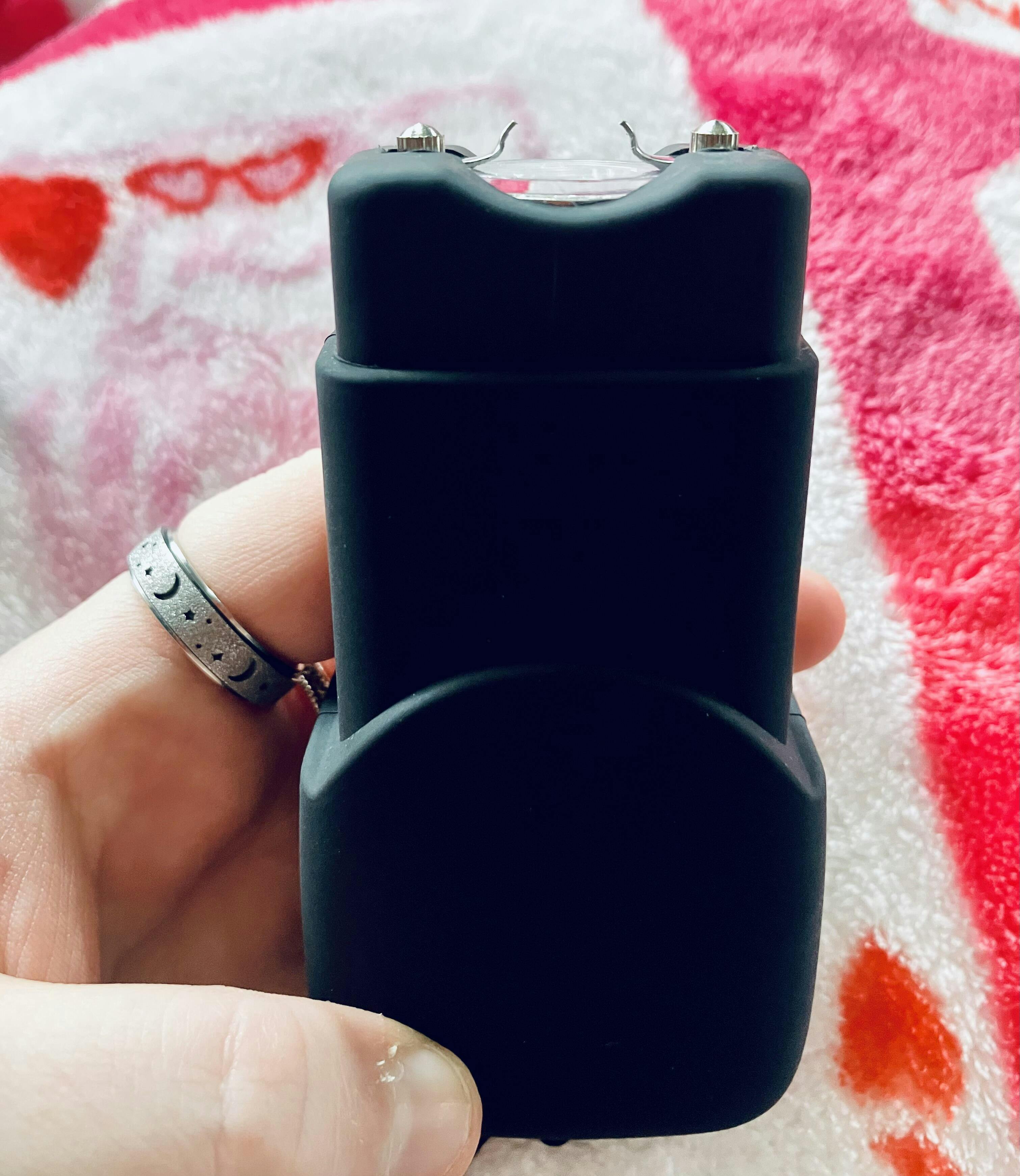 A Tiny Protector at all times: Whether you have an attacker near or far, the stun gun's blinding flashlight and zapping prongs will help keep them away and, more importantly, keep you safe.